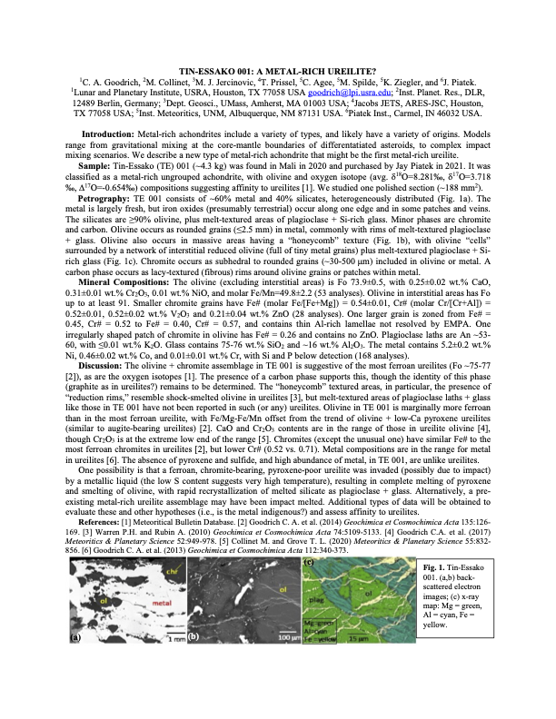 C A Goodrich (Universities Space Research Association Columbia, Maryland, United States) M Collinet (German Aerospace Center Cologne, Germany) M J Jercinovic (University of Massachusetts Amherst Amherst Center, Massachusetts, United States) T Prissel (Jacobs (United States) Dallas, Texas, United States) C Agee (University of New Mexico Albuquerque, New Mexico, United States) M Spilde (University of New Mexico Albuquerque, New Mexico, United States) K Ziegler